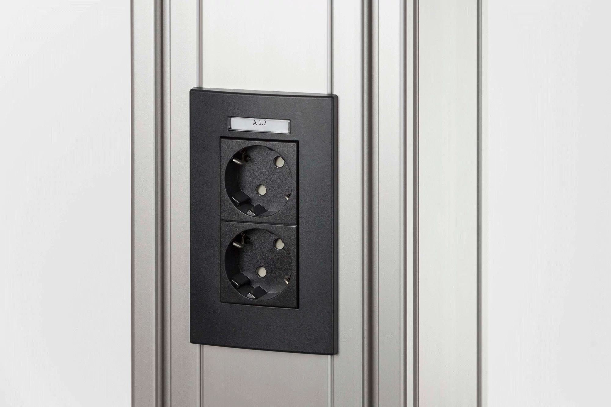 Face Plate M45 2 Gang with Labelling Panel, black grey, similar to RAL 7021, Delivery unit: 1 pce.