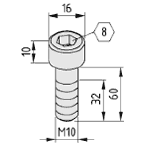 Hexagon Socket Head Cap Screw DIN 912 M10x60, bright zinc-plated, Delivery unit: 1 pce.